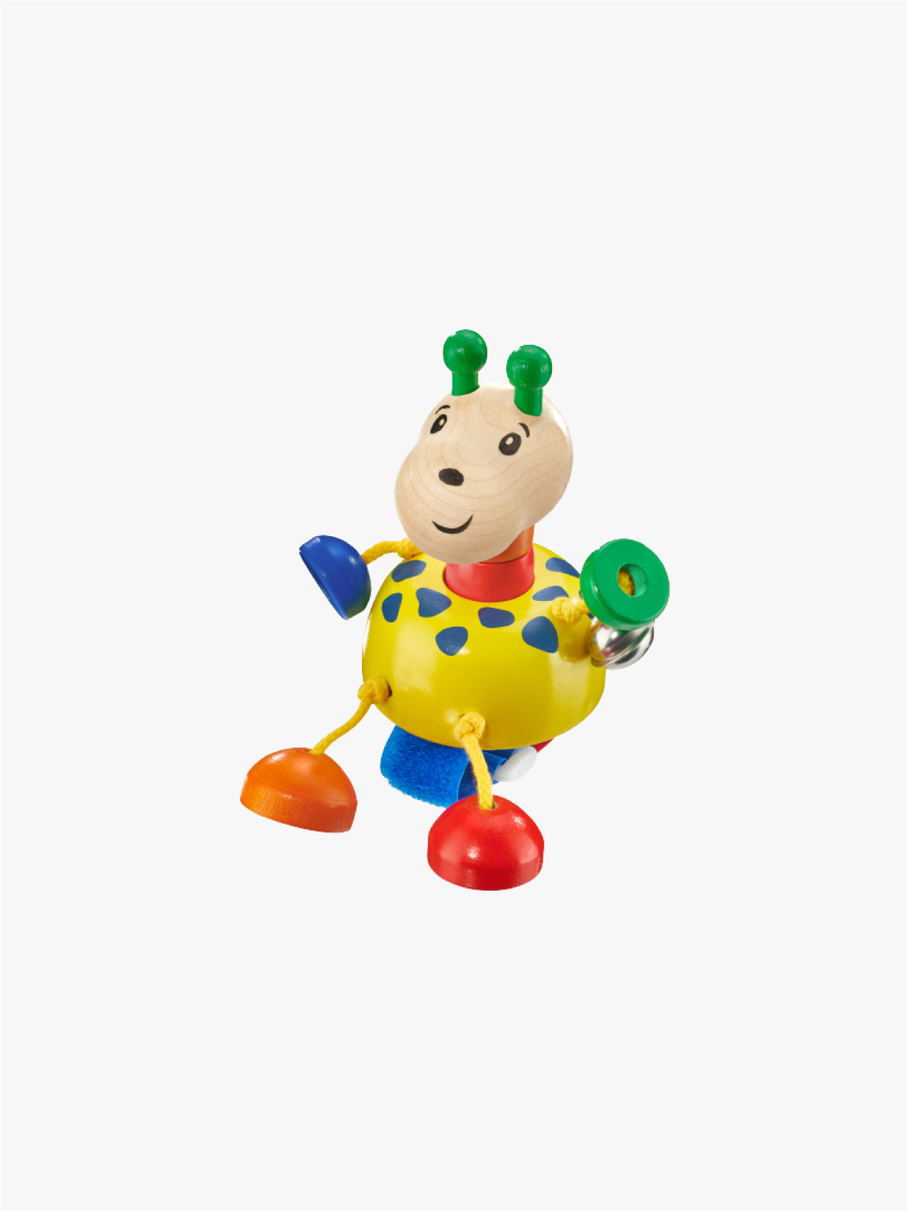 Die lustig bunte Giraffe freut sich, wenn sie bei der Ausfahrt gedrückt und bespielt wird. Bei jedem festen Druck auf den Kopf ertönt ein freudiges Quietschen. Mit Klettband für eine einfache und sichere Befestigungsmöglichkeit an Buggy und Kinderwagen. Für Unterhaltung sorgen ein Glöckchen und die eingebaute Hupe.